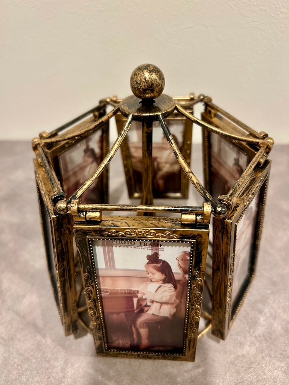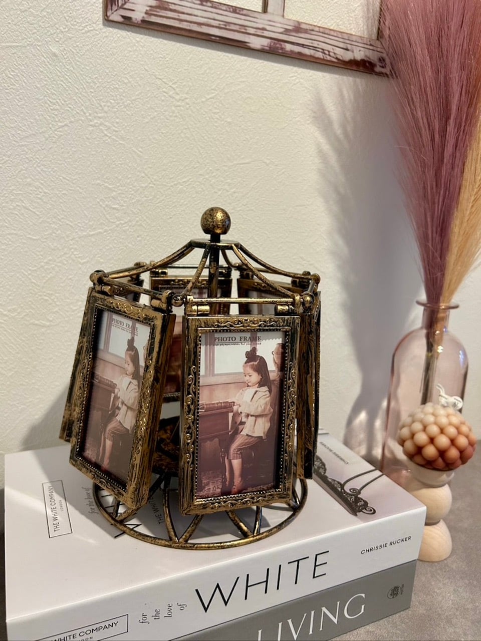 魅力いっぱいのフォトフレームが入荷♪ 写真を6枚(裏側にも飾れば計12枚)も飾ることができ、本体をくるくると回すと優しいオルゴールの音色が流れ、特別な空間を演出します。印象的なデザインは、お部屋のインテリアに華を添え、大切な思い出を美しく飾るお手伝いをします☆