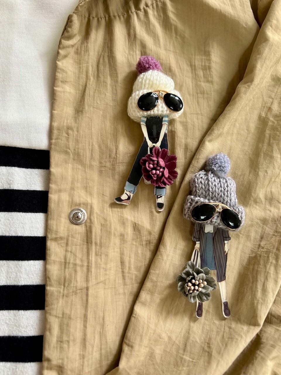 バッグやジャケット、帽子などにつければ、コーディネートのポイントとして活躍します。