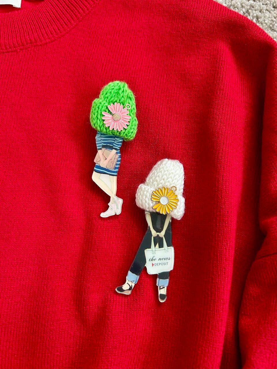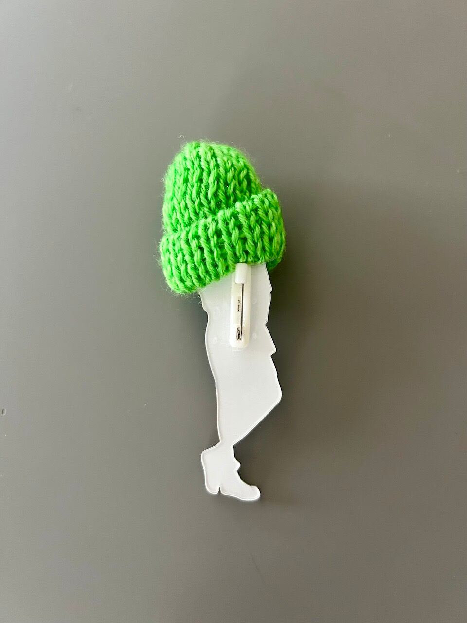 ニット帽とフラワーモチーフがアクセントになった、遊び心あふれるファッションガールのアクリルブローチです。