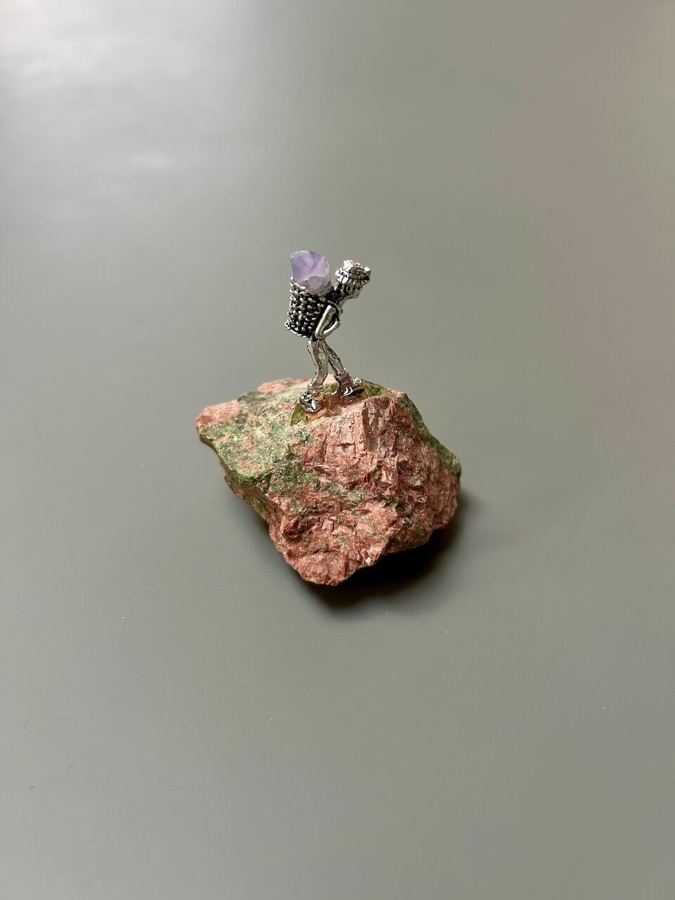 ユナカイト鉱山の探検者 ミニチュアオブジェ(アメジスト)|インテリア雑貨 置物 天然石 アメジスト ミニチュア フィギュア オブジェ