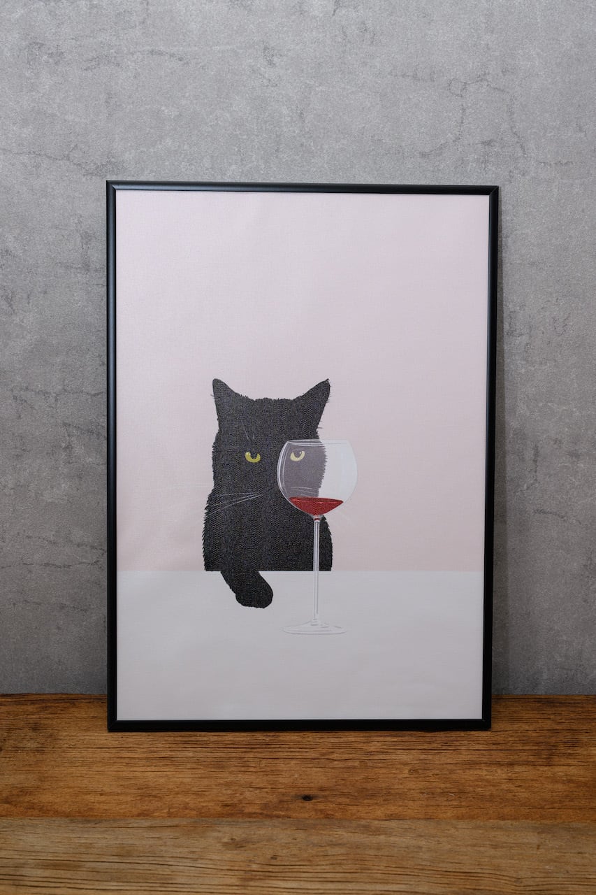 キャンバスアートポスターA3額縁セット 黒猫とワイン