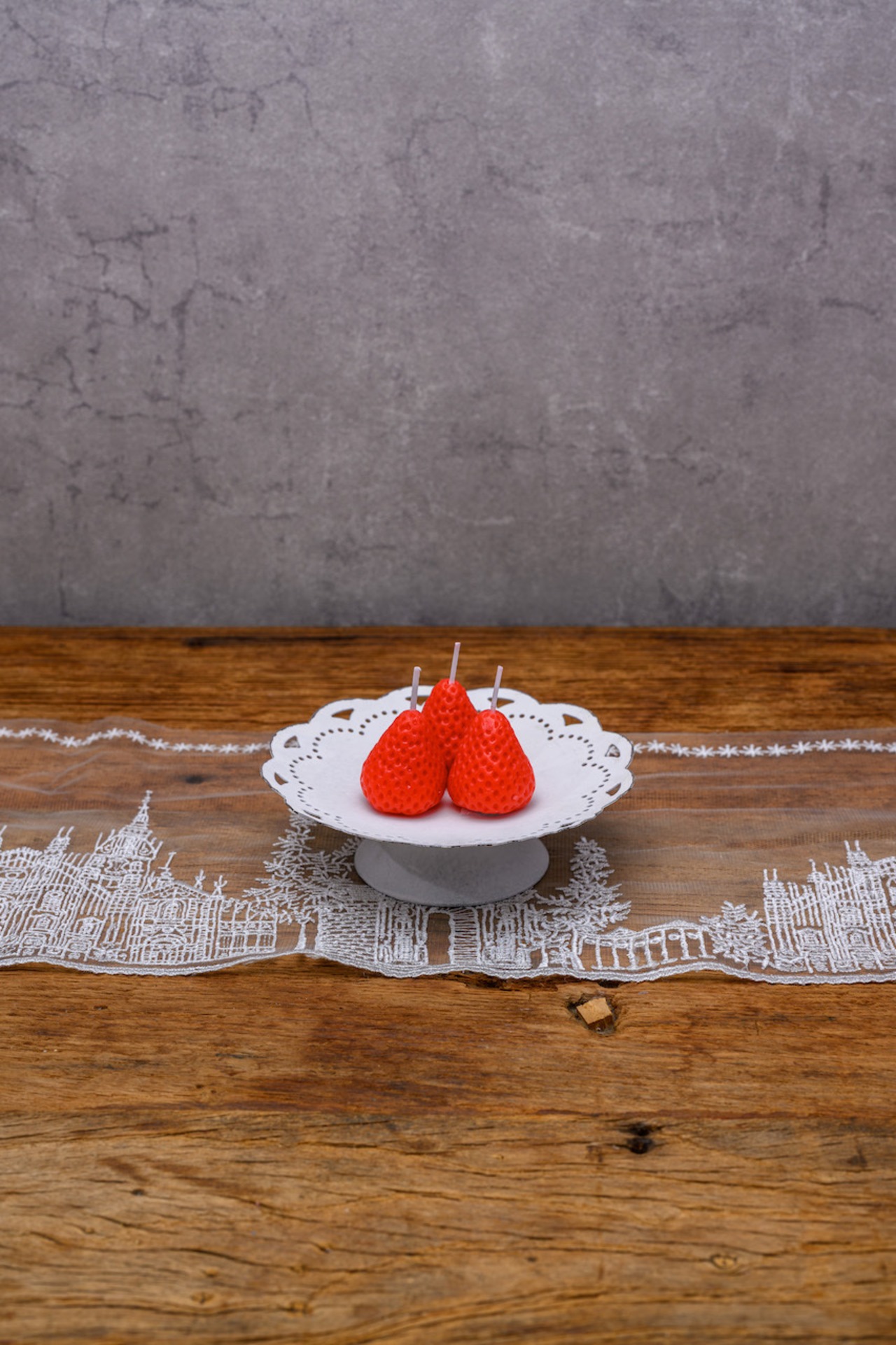 白いレースの繊細さと、経年劣化の風合いが共存した、独特の美しさを感じられるヴィンテージ調コンポートです。コーディネート例のように、アロマのモチーフキャンドルや、お気に入りの小物をディスプレイするだけで素敵な空間が完成します。さらに季節の小花やドライフラワーをプラスすると、年間を通しての飾り付けが簡単にできそうですね♡