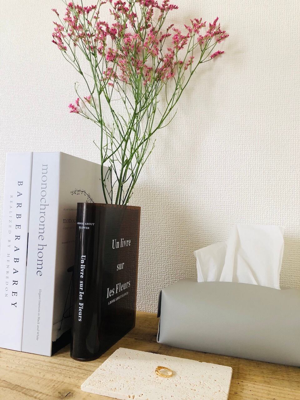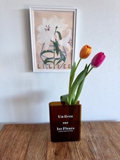 本や雑誌のようなデザインが特徴的なフラワーベース。そのおしゃれでスタイリッシュな見た目がSNSでも話題です。中にお花を飾れば、まるで本の中から花が咲いているような幻想的な演出を楽しむことができます。透明感のあるブラウンの色合いが、どんなお部屋にもマッチします。大切な方へのギフトとして、また自分へのご褒美として、是非選んでいただきたいアイテムです(^-^)/