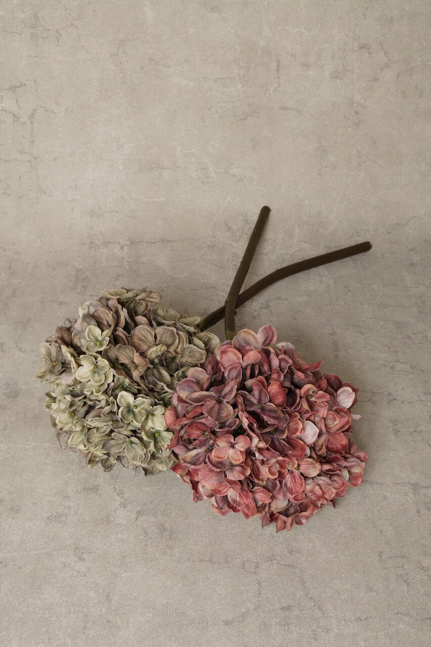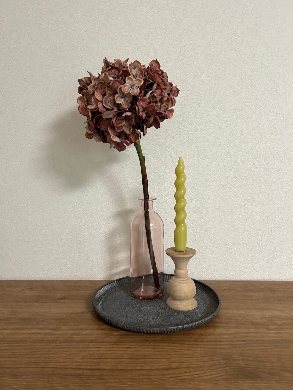 服を着替えるように、その時の気分で生花だったり、ドライだったり、造花だったり。インテリアコーデに草花は欠かせません!インテリアに馴染むアッシュカラーのあじさいは、ロマンチックな雰囲気を作り出します。主役としても脇役としても年間を通して活躍すること間違いなしです☆
