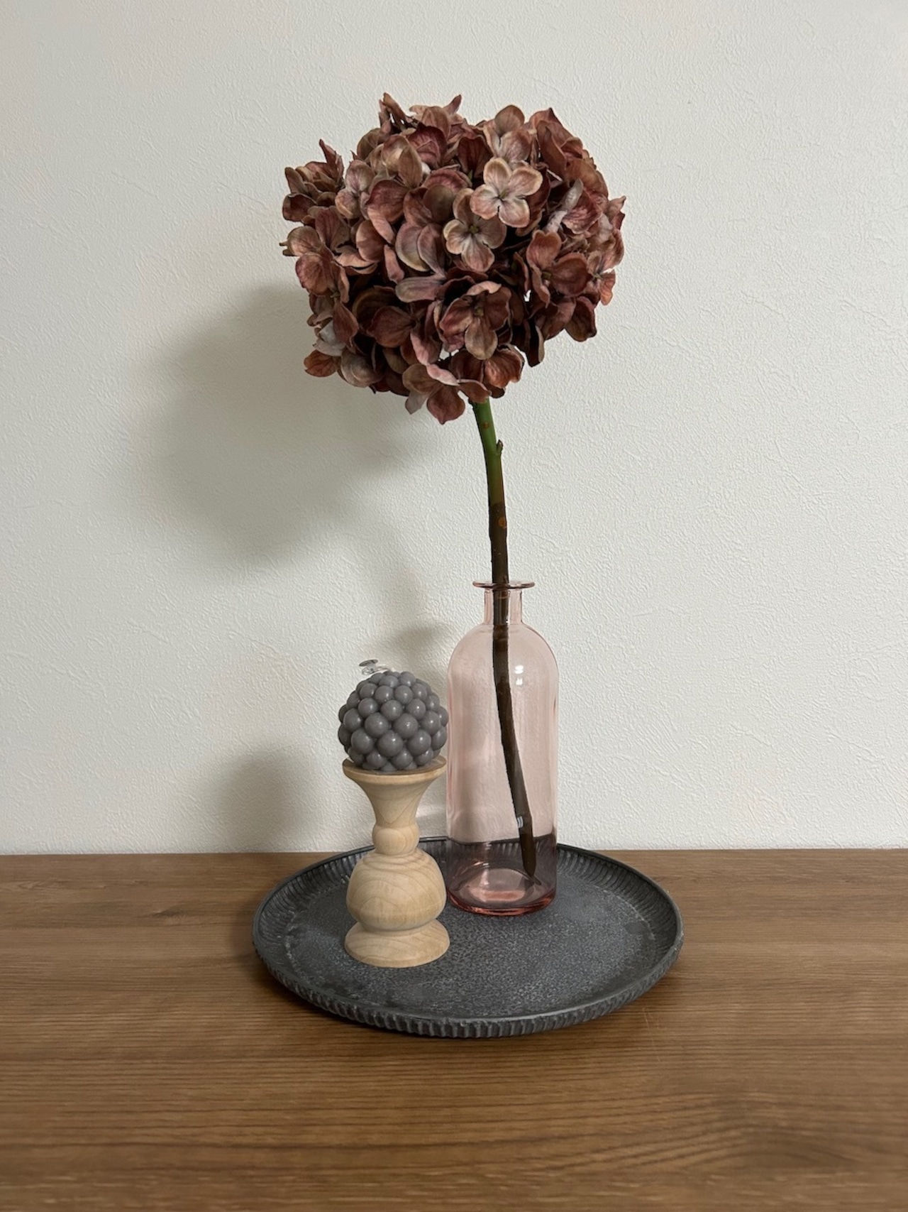 服を着替えるように、その時の気分で生花だったり、ドライだったり、造花だったり。インテリアコーデに草花は欠かせません!インテリアに馴染むアッシュカラーのあじさいは、ロマンチックな雰囲気を作り出します。主役としても脇役としても年間を通して活躍すること間違いなしです☆