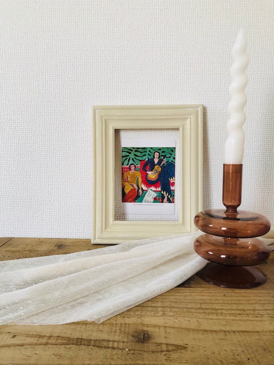 額装として新しいかたちの空間を演出する、そんな使い方のフレームです。フレームといえば写真やポスターを飾る枠のイメージですが、フレーム自体をインテリアとして考えてみる。ディスプレイする前はどう使ったらいいかな・・と難易度高めのイメージだったのですが、実際に雑貨と合わせてみるとあら不思議、あるとないとじゃ完成度が違う!縁の下の力持ち的な存在でした(笑)