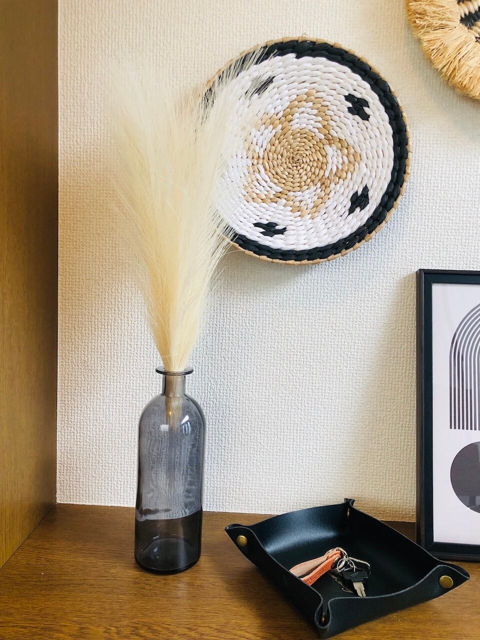 あなたのお部屋に手軽にアート空間を演出するパンパスグラス。トレンドのアイテムであり、インテリアにこだわりを持つ方々に大変人気です。その美しいフォルムと存在感は、インテリアスタイリングの引き締め効果を叶えてくれます。季節の花というよりはインテリアに近い位置付けで、年間を通して活躍してくれるに違いありません^^。