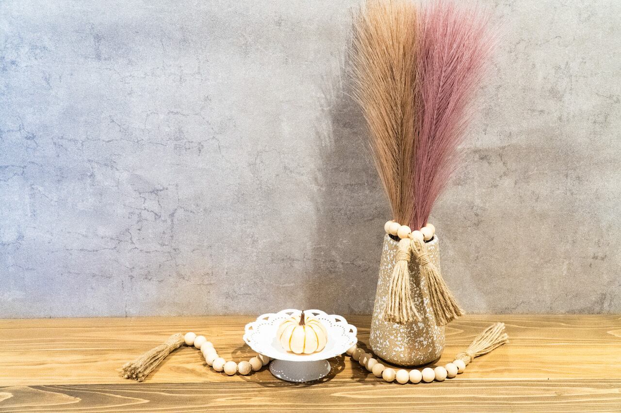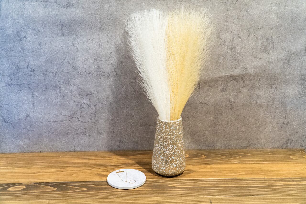 あなたのお部屋に手軽にアート空間を演出するパンパスグラス。トレンドのアイテムであり、インテリアにこだわりを持つ方々に大変人気です。その美しいフォルムと存在感は、インテリアスタイリングの引き締め効果を叶えてくれます。季節の花というよりはインテリアに近い位置付けで、年間を通して活躍してくれるに違いありません^^。