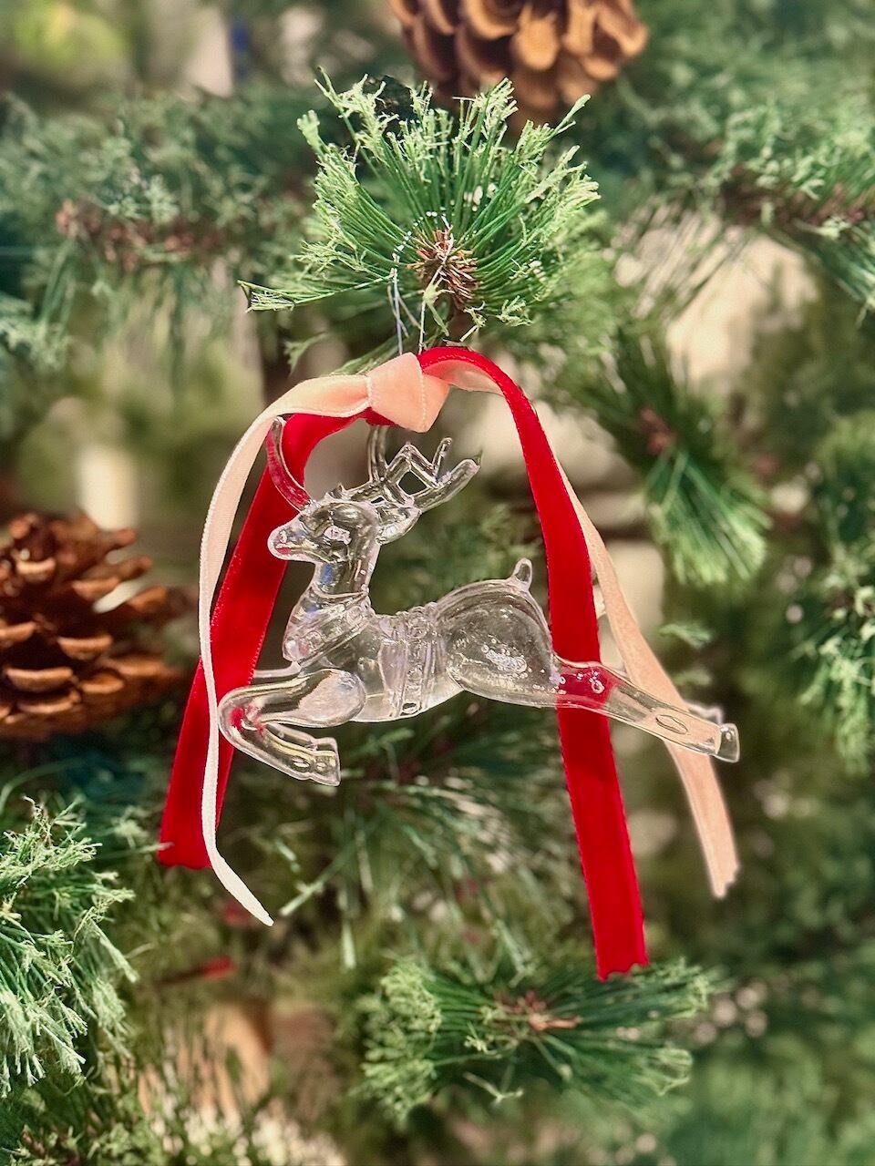 キラキラと輝くクリアな透明感が美しい、トナカイの形をしたオーナメント。シンプルでありながらも存在感を放つデザインなので、他のオーナメントとの相性も抜群です。また、枝に吊るすだけでも素敵なデコレーションになりそう☆