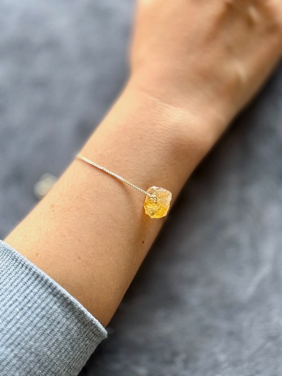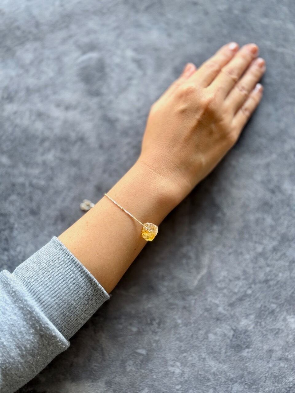 富と繁栄をもたらす「幸運の石」として知られるシトリン。洗練されたデザインとその美しいジェムストーンが、あなたの腕元を華やかに彩ります。華奢見え効果も抜群で、ファッションに敏感な女性にぴったりです。
