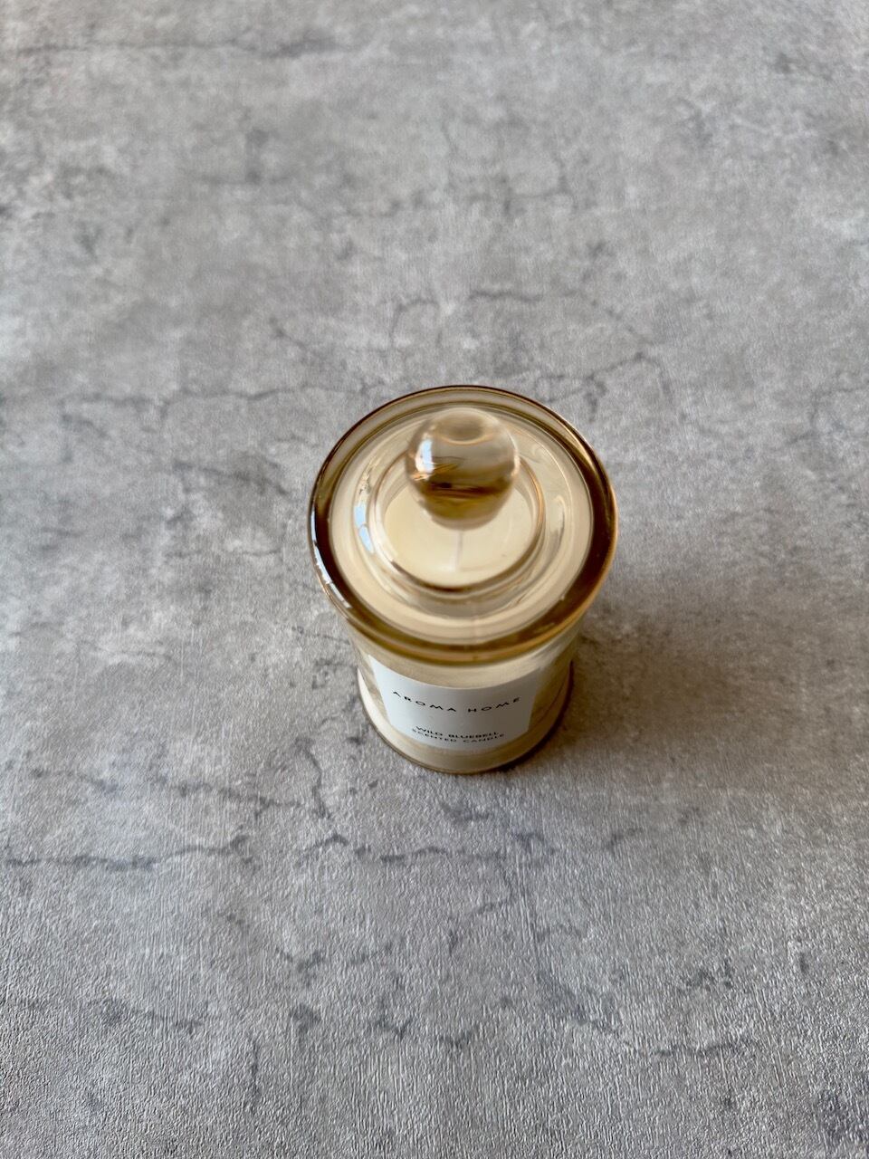 蓋付ガラス瓶入りアロマソイキャンドル・イエロー(ワイルドブルーベルの香り)