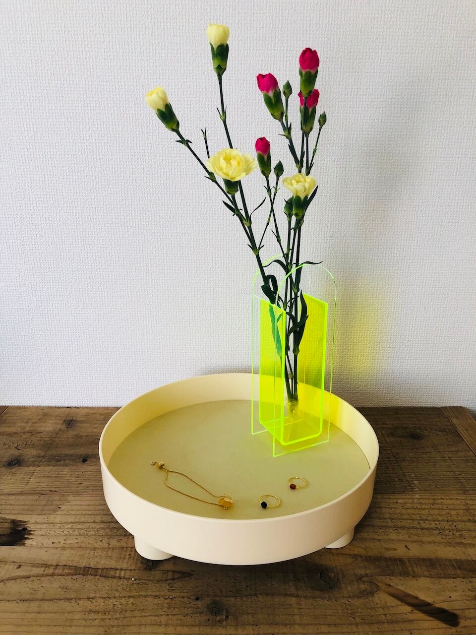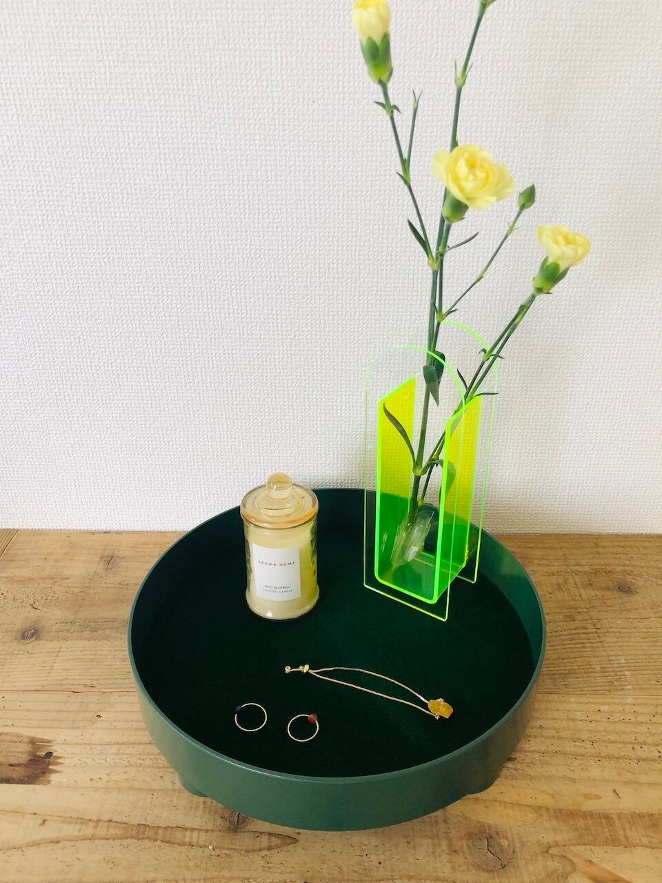 このクリアとライトグリーンの配色が、花々の鮮やかな色彩を一層引き立て、お部屋に華やかな雰囲気をもたらします。あなただけのオリジナリティ溢れるインテリアを作り上げましょう。