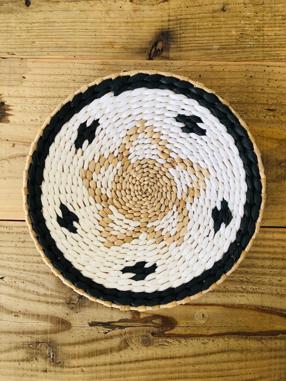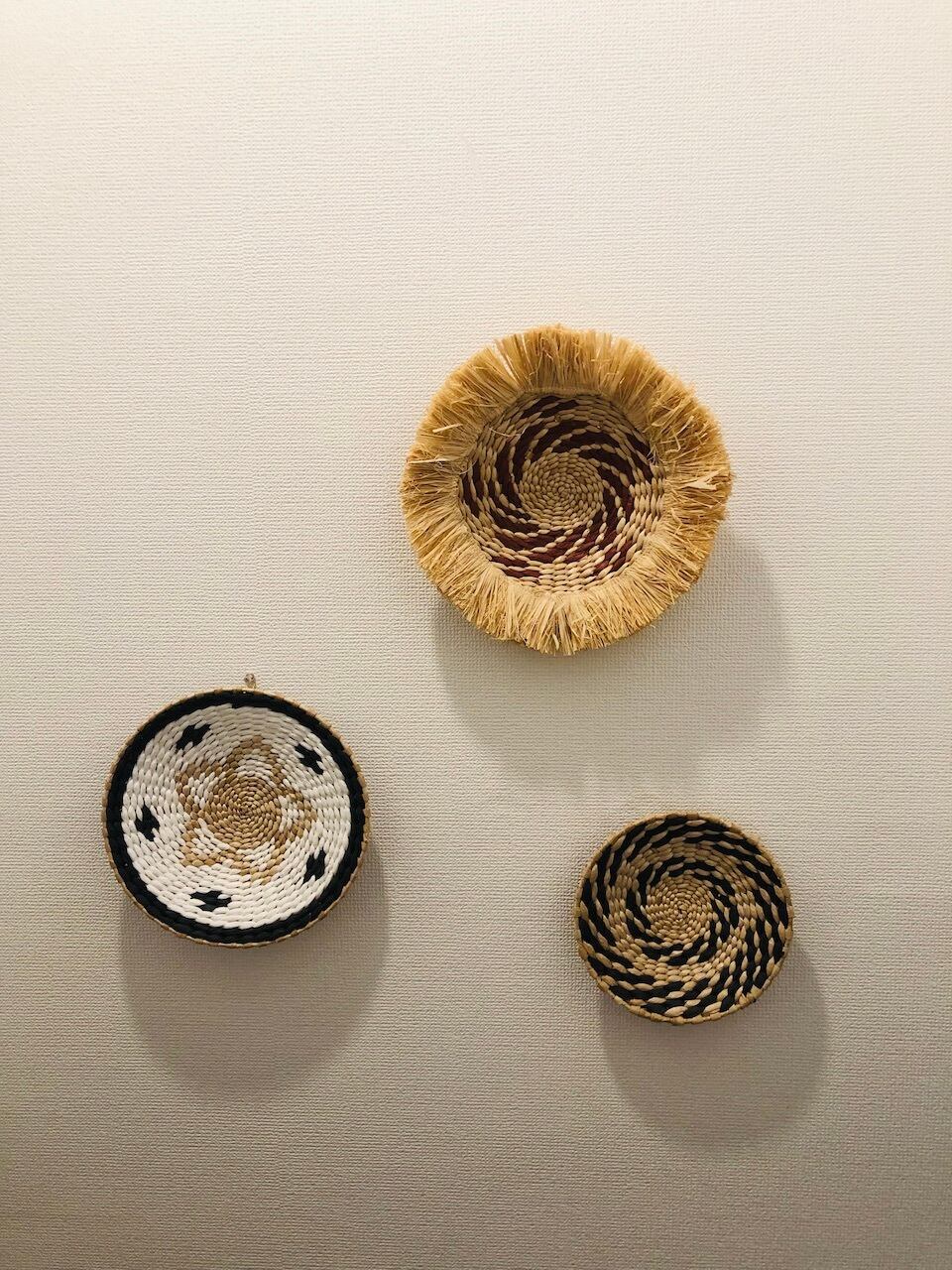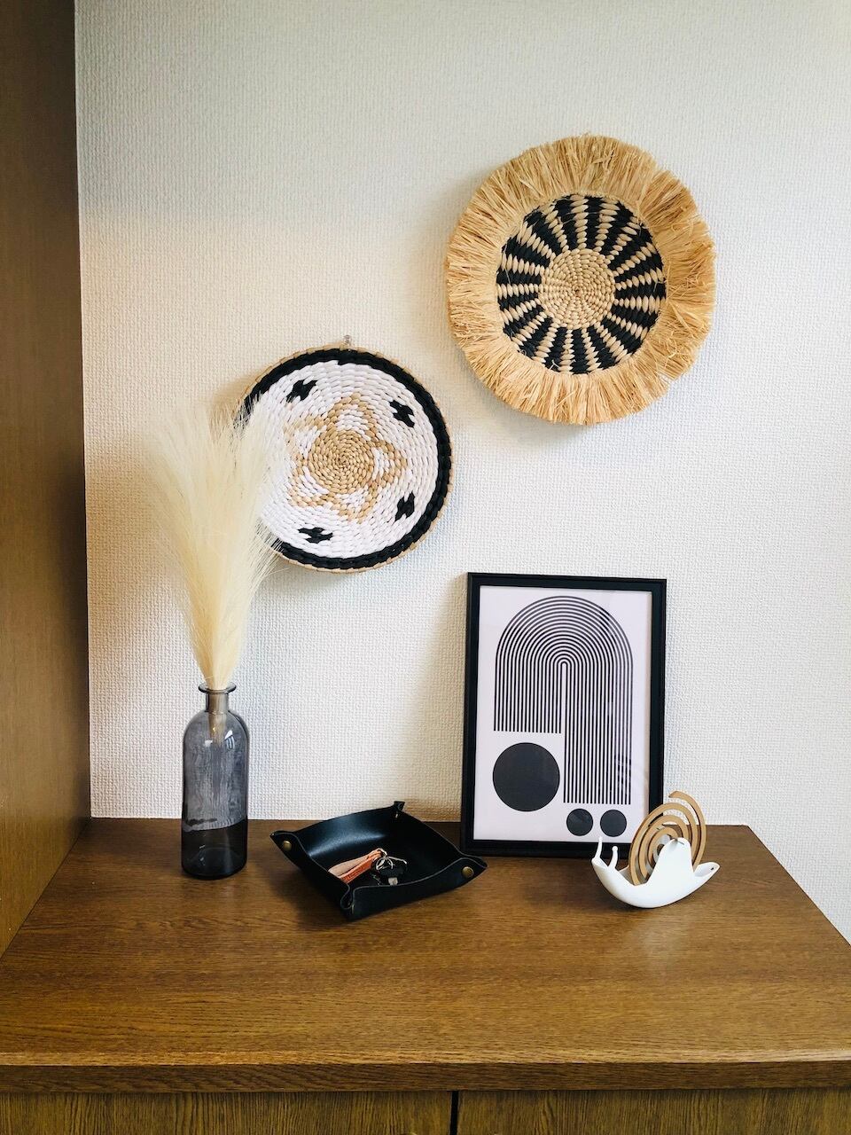 手織りで編まれた100%ストロー(わら)製の壁掛けプレートです。モダンでありながらも、温かみを感じさせるデザインで、リビングや玄関などのお部屋を素敵に飾ってくれます。手織りならではの独特の風合いや質感が、心地よい空間を演出してくれます。裏面に壁掛けできるリング状のロープがあるので、届いたらすぐに設置できるのもいいですね♪