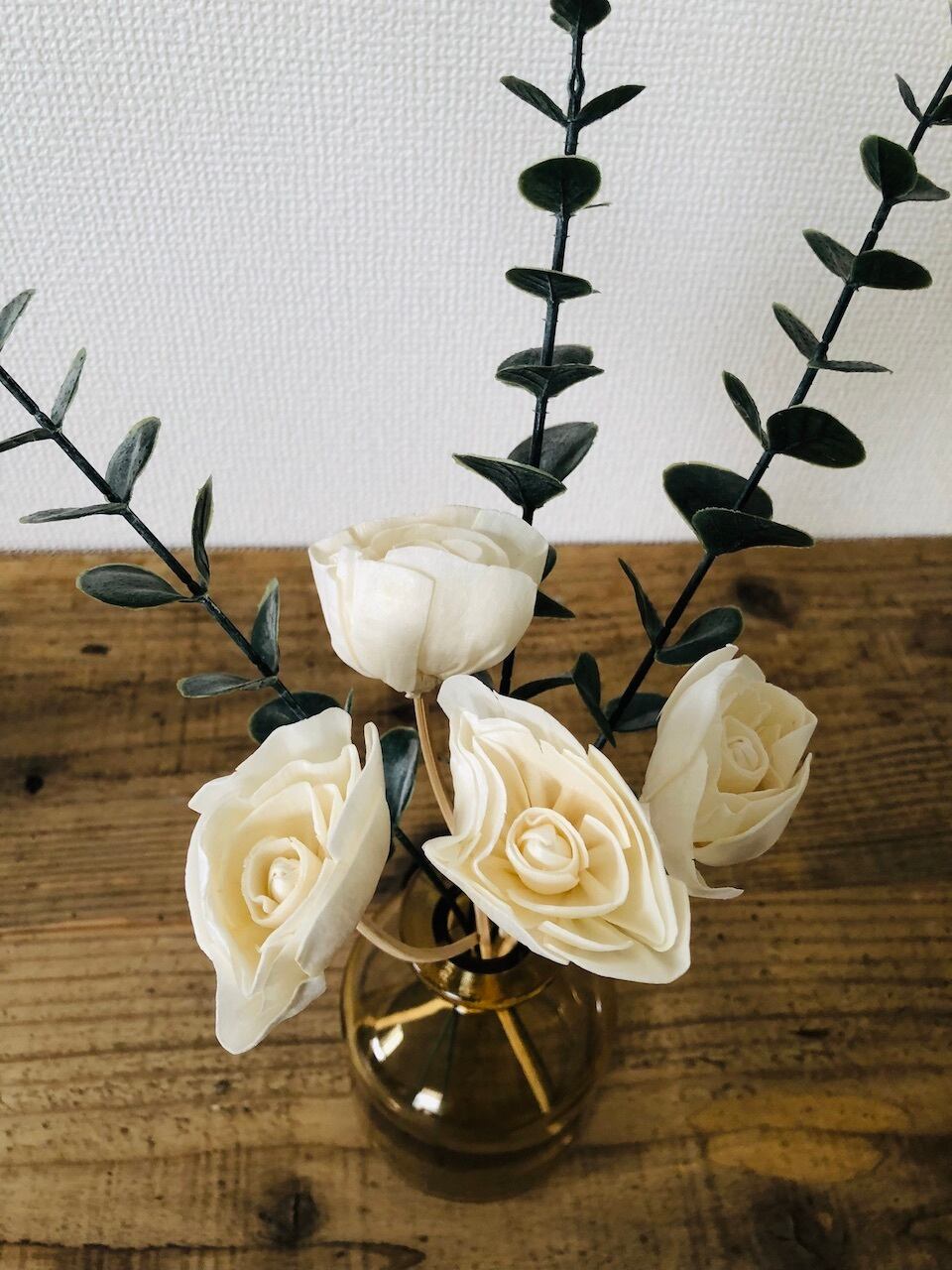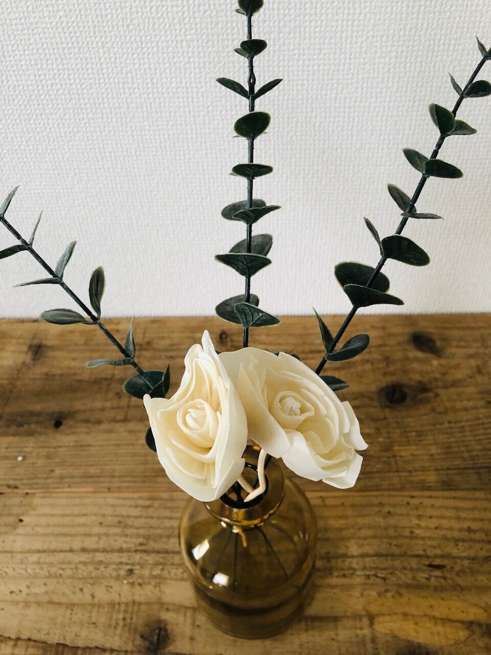 ・ディフューザー液を吸い取るのはローズスティックのみです。ユーカリは装飾です。