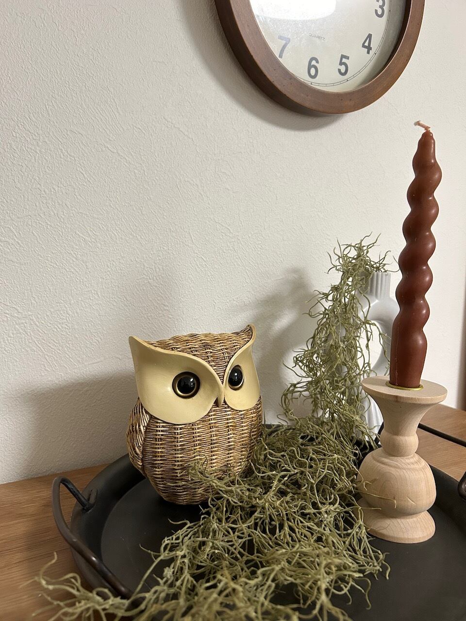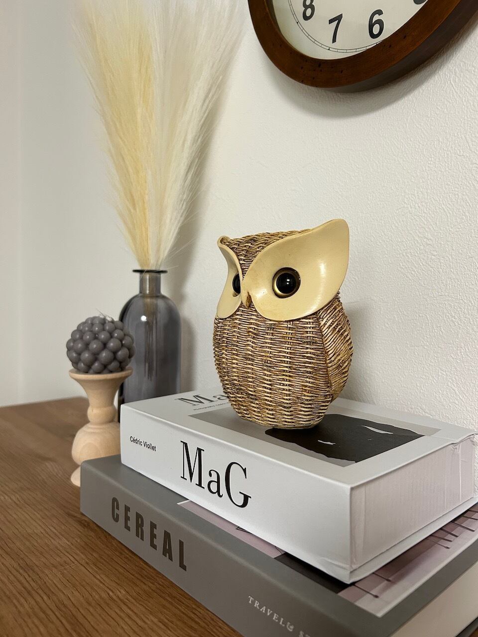 小振りでかわいらしいデザインは、どんな空間にも合わせやすく、気軽に取り入れられます。フクロウは縁起の良いシンボルともされており、見た目の美しさだけでなく、心を和ませる効果も期待できます!リビングや寝室に飾れば、温かみのある空間を演出し、秋らしい雰囲気も感じることができて一石二鳥ですね^^