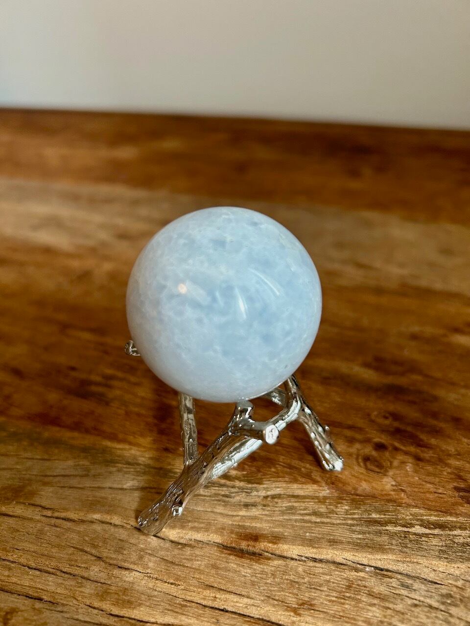 少し灰色がかった繊細な青水色が特徴のセレスタイトボールが新しく入荷しました♪