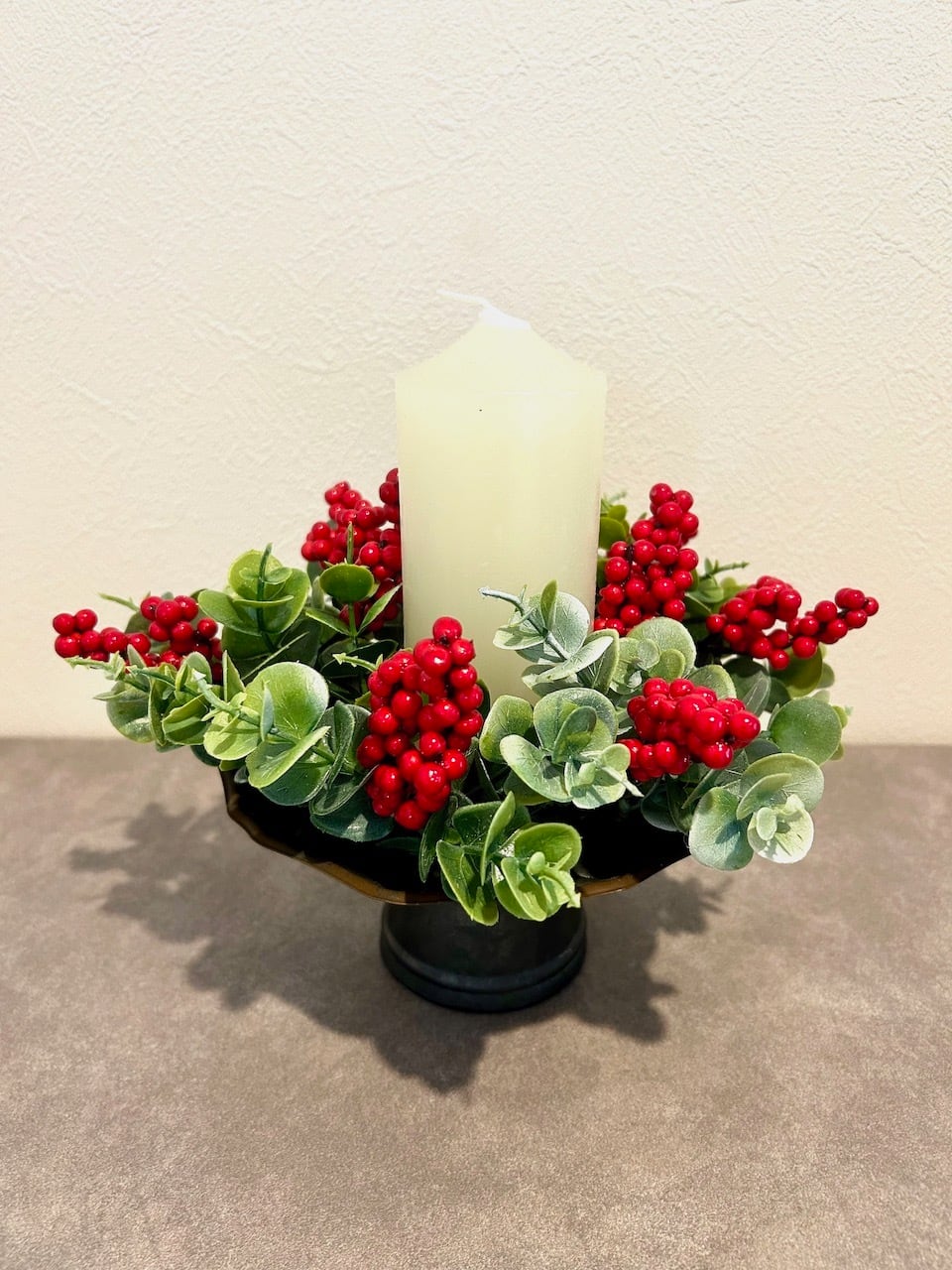 愛らしいデザインが魅力のキャンドルリースが新しく入荷しました♪ このリースは、クリスマスシーズンだけでなく、年間を通じてお部屋に彩りを添えることができるアイテムです。テーブルセッティングやリビング、玄関のデコレーションにも最適で、上品でありながら温かみのある雰囲気を演出します。鮮やかなレッドベリーとリーフが調和し、シンプルながらもおしゃれな印象を与えてくれます。特別なひとときを演出するために、ぜひ取り入れてみてください♪