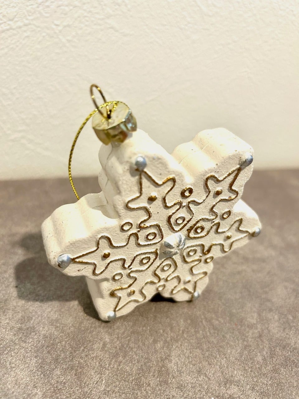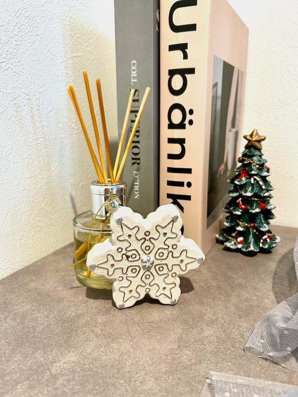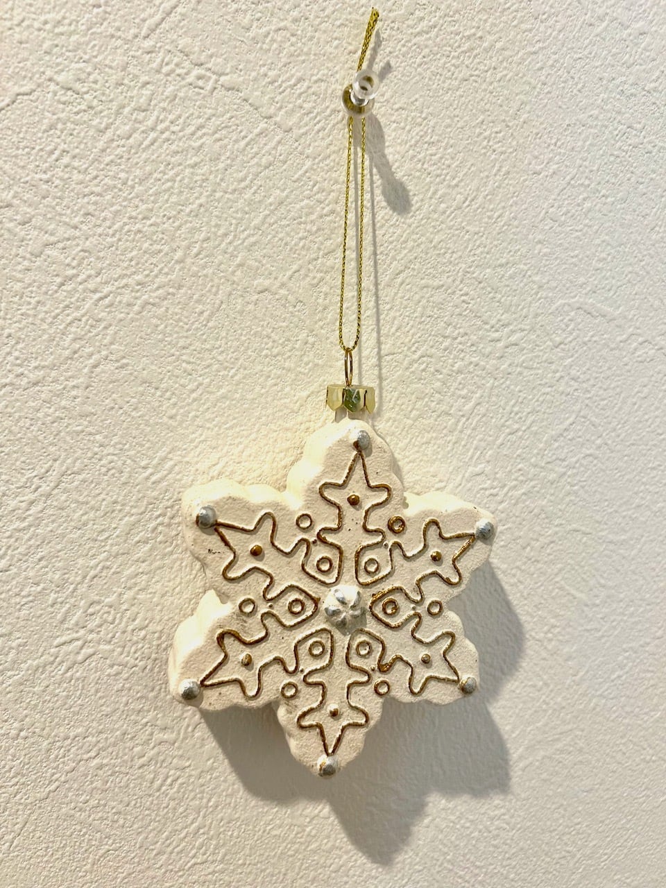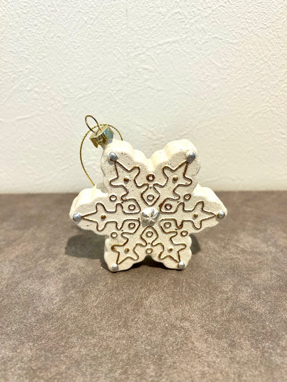 雪の結晶をモチーフにした可愛らしいオーナメントが新しく入荷しました♪ このオーナメントは、クリスマスツリーのデコレーションはもちろん、置き物としてもご使用いただけるアイテムです。北欧テイストのデザインが、お部屋に温かな雰囲気をもたらし、特別な空間を演出します。心温まるクリスマスのひとときを、ぜひこのオーナメントとともにお過ごしください♪