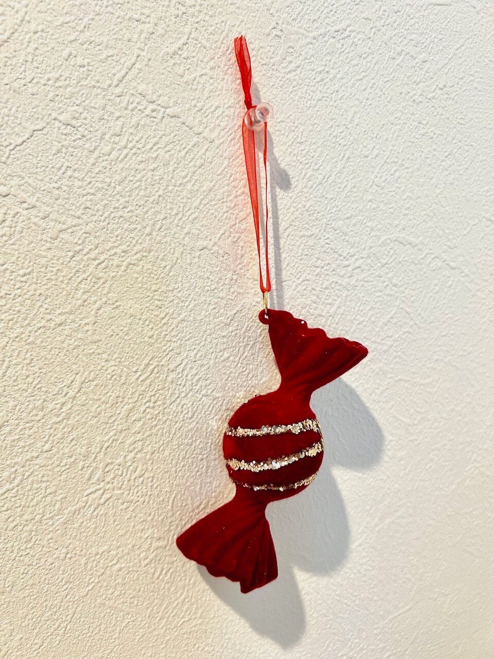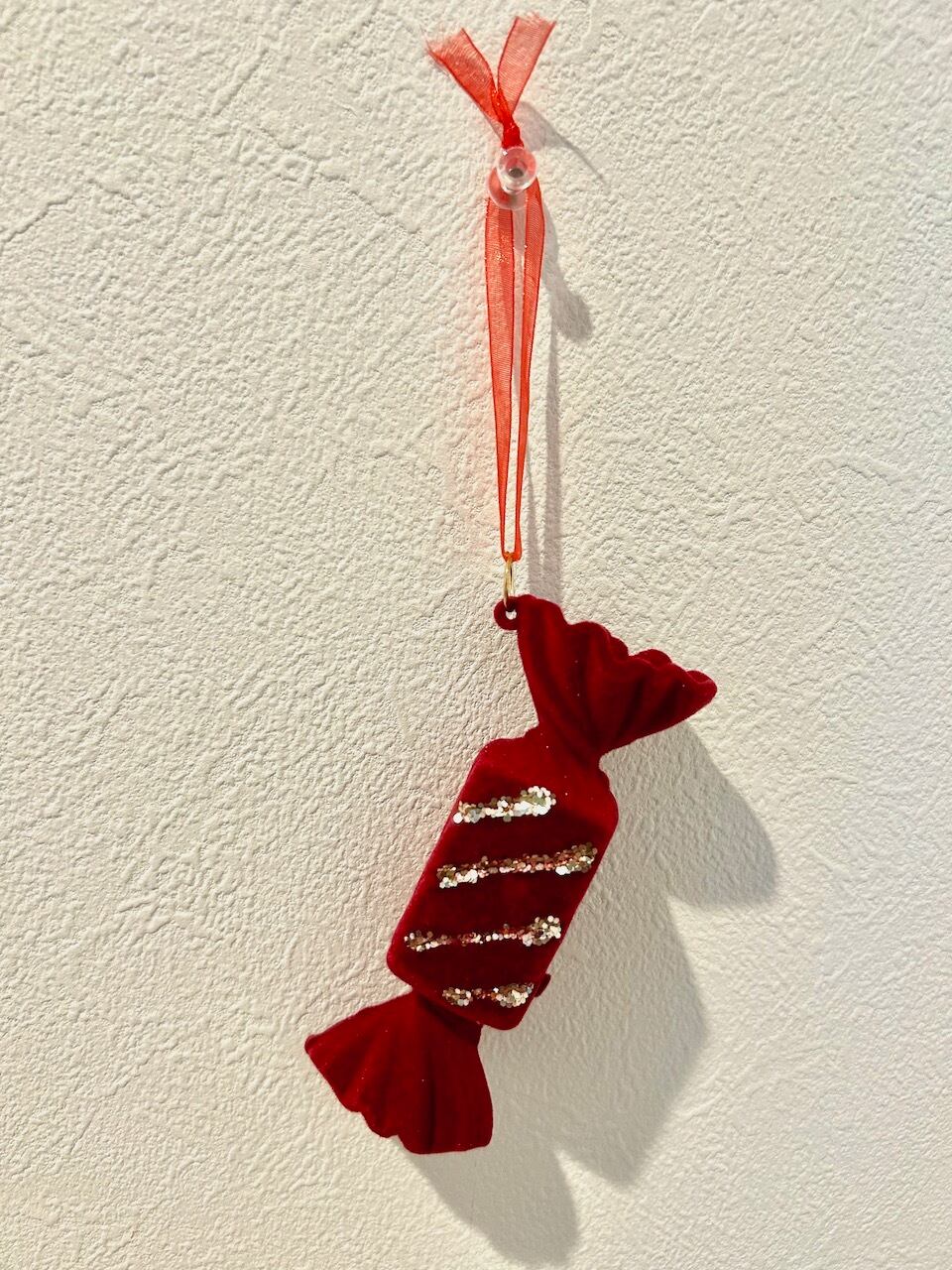 可愛らしいデザインが目を引く、飴の形をしたオーナメント2個セットが入荷しました♪ クリスマスツリーのデコレーションとして、柔らかなベルベット素材が温かみをもたらし、お部屋を華やかに彩ります。また、ユニークなデザインが差をつけ、遊び心を感じさせてくれることでしょう。心躍るクリスマスのひとときを、ぜひこのオーナメントとともにお過ごしください♪