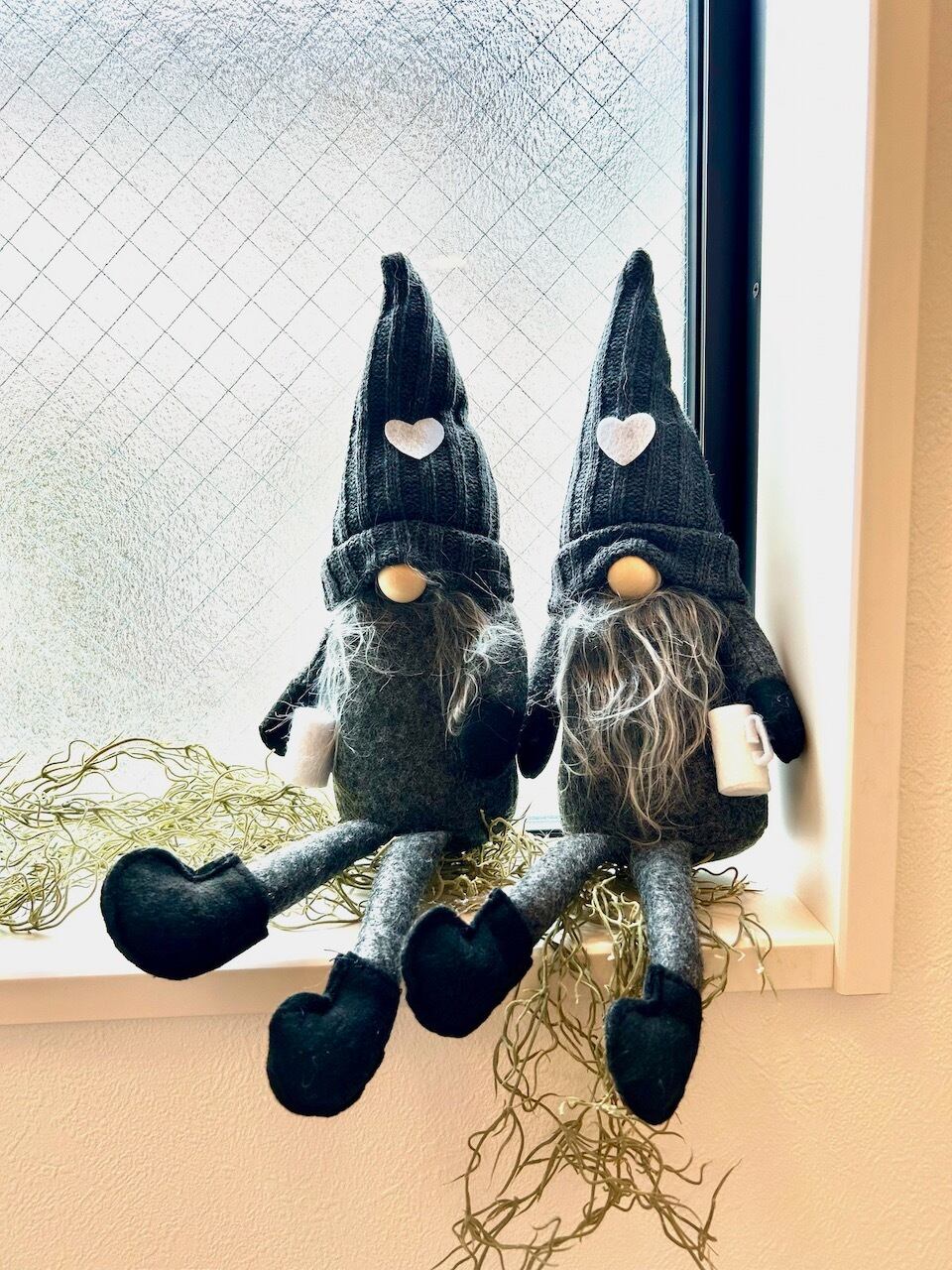 温かみのあるフェルト素材で作られた、座りタイプのインテリアオブジェです。結構な大きさで存在感があります^^ リビングや玄関に置くだけで、お部屋のアクセントとなり、ほっこりとした雰囲気を演出します。足を組ませたりして(笑)お好きなところに座らせてください(^-^)v