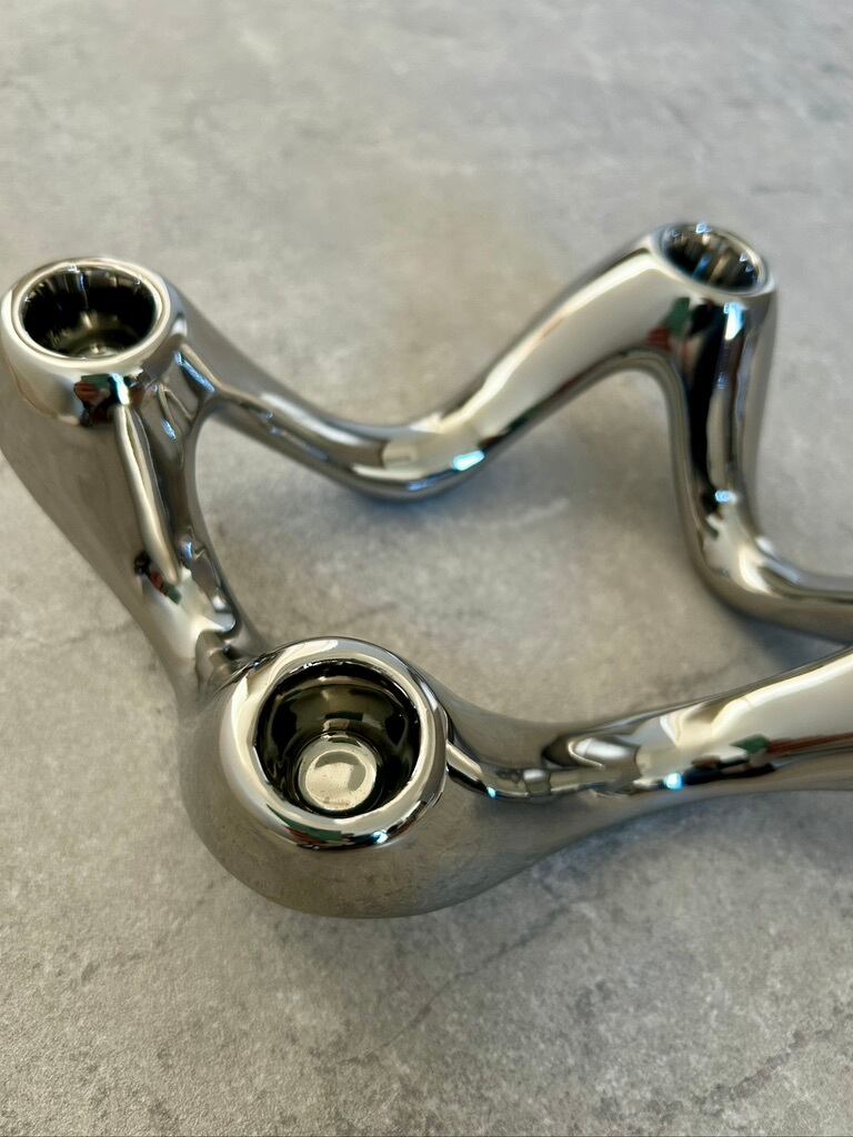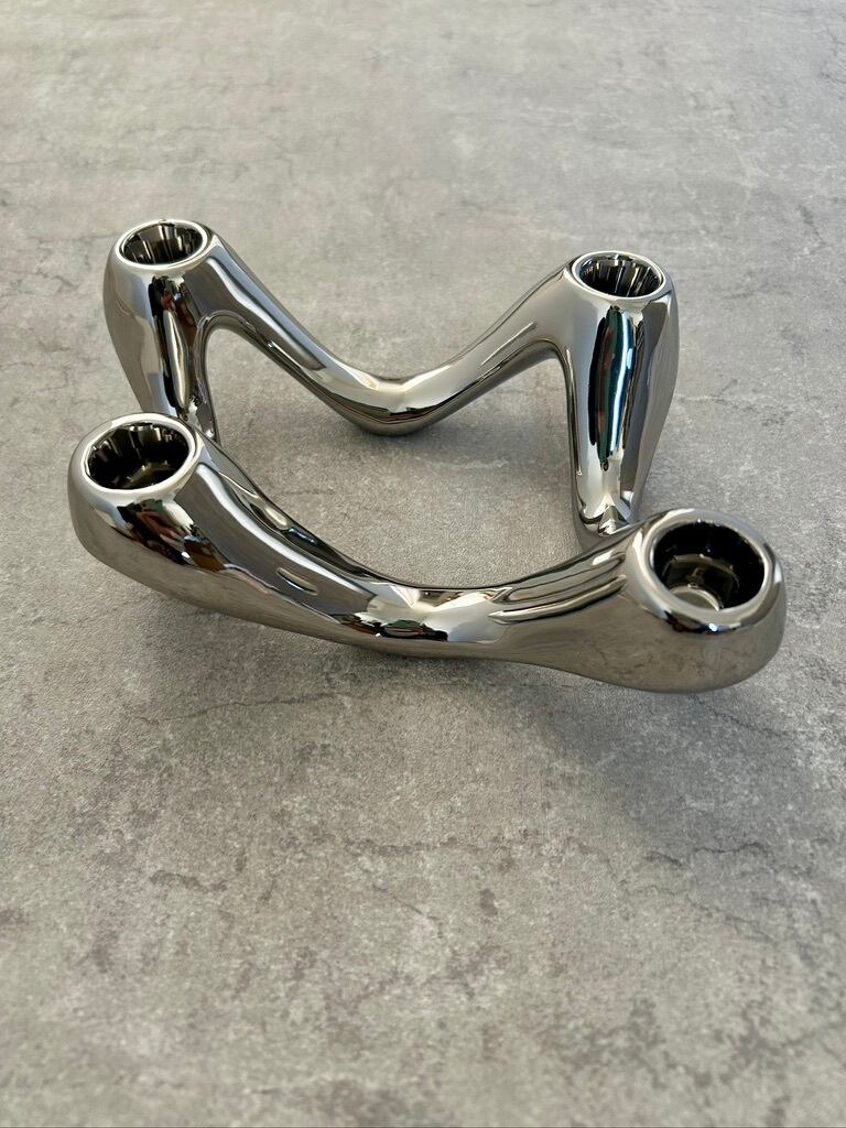 シルバーセラミックキャンドルホルダー 4連ウェーブ型
