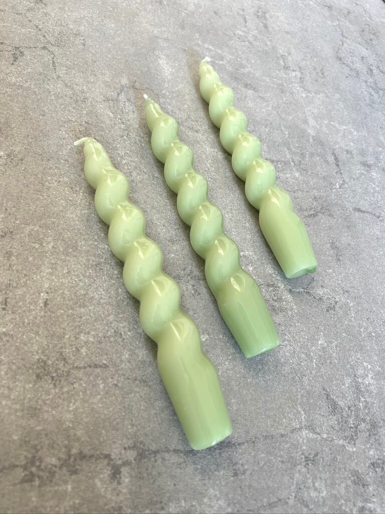 【お得な3本セット】スパイラルテーパーキャンドル(ライトグリーン)